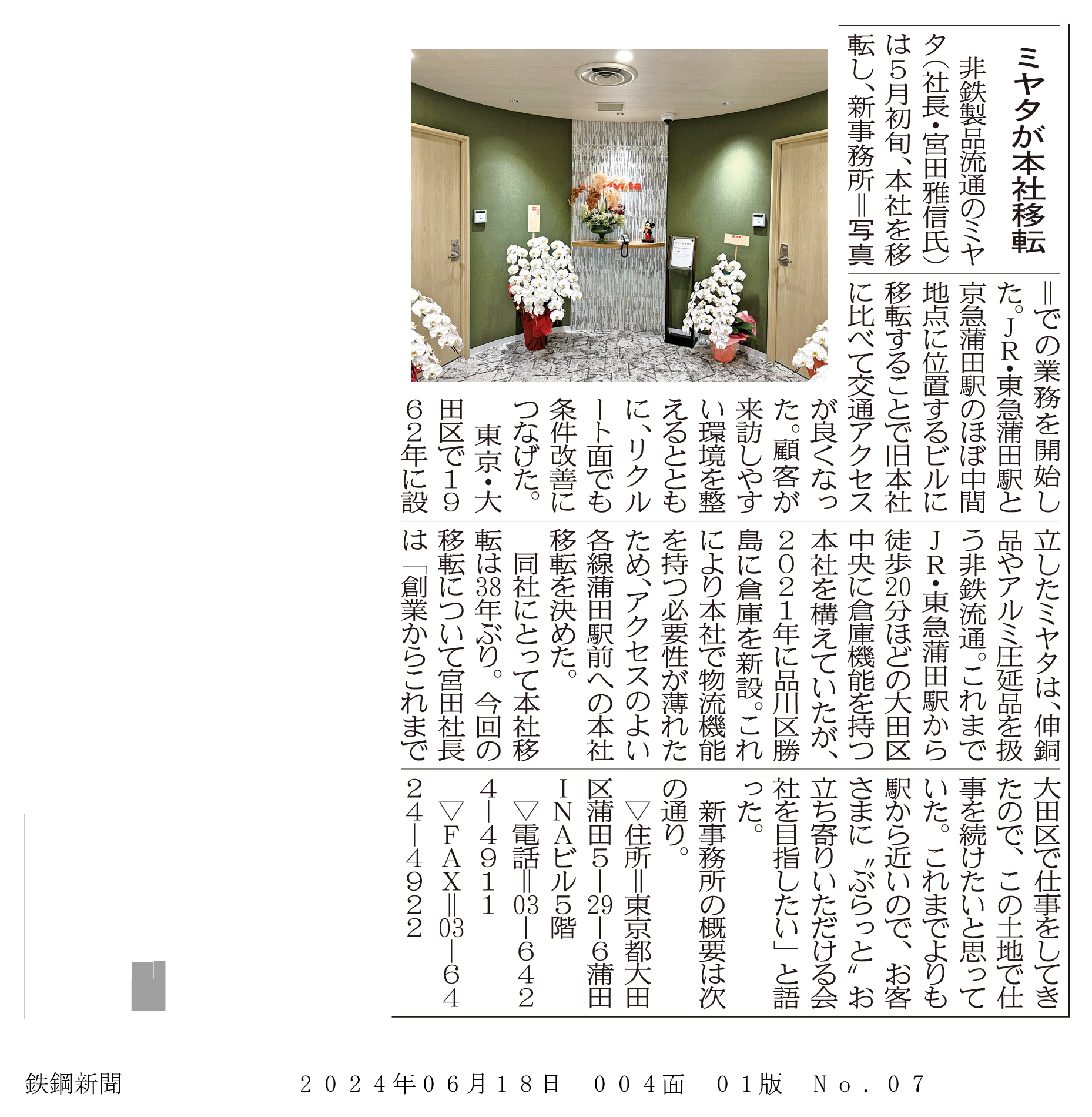 この度、1986年から大田区中央にて本社業務を続けて参りましたが、